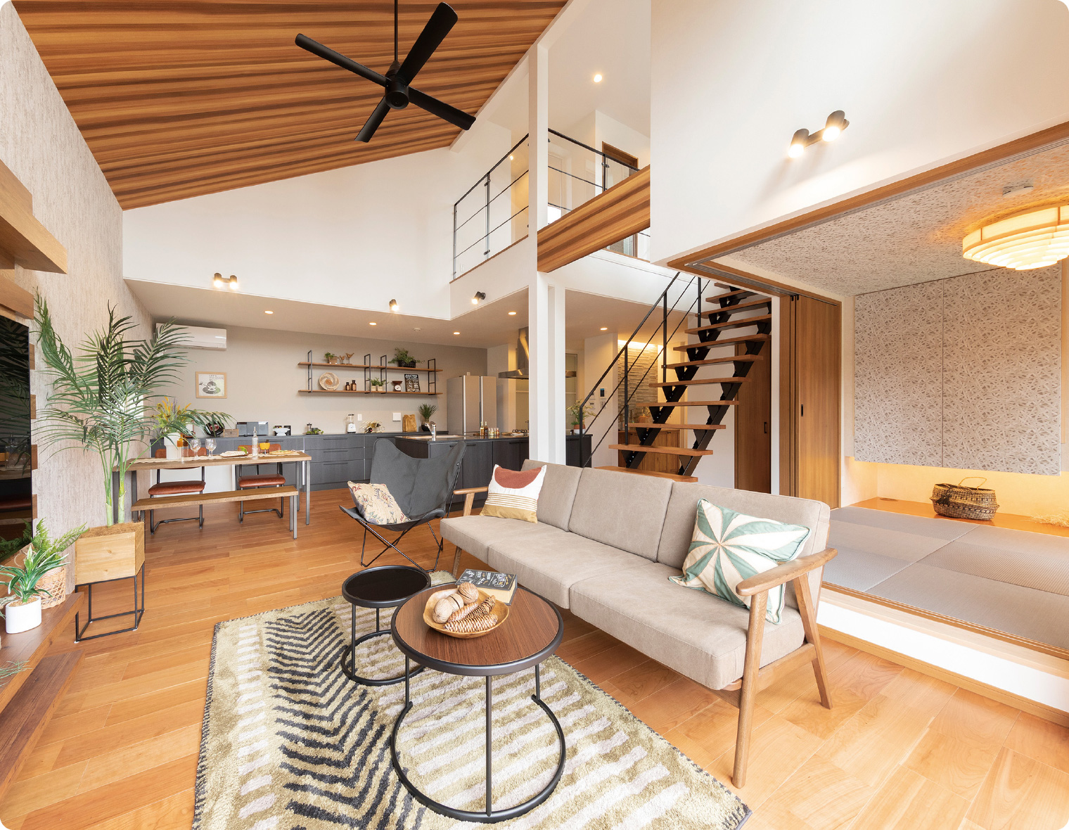 室温を実現する吹抜けが魅力の住まい。