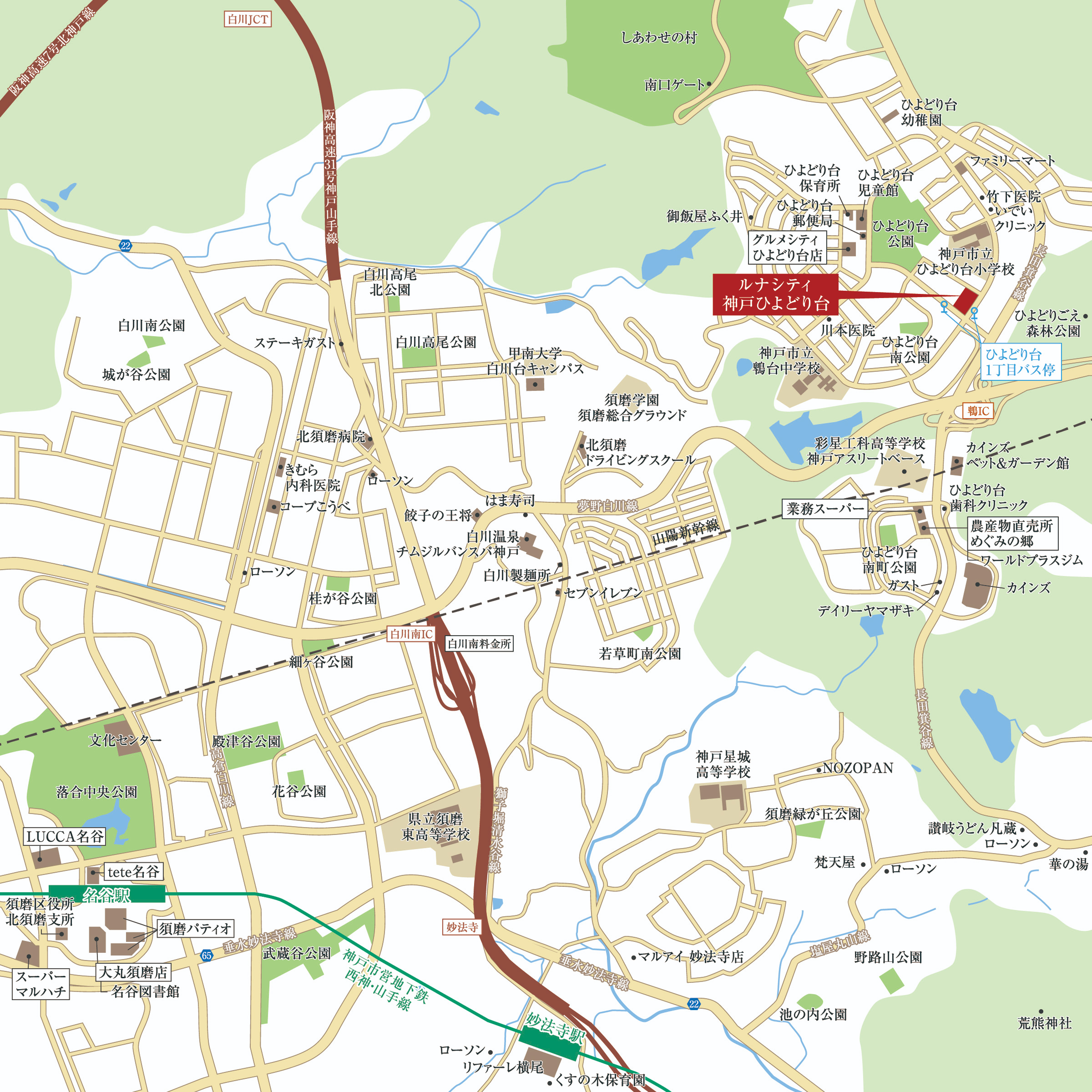 徒歩3分の「ひよどり台公園」緑豊かな公園で、花壇、里山、プレーパーク、スポーツなどさまざまな活動が盛んに行われています。お子様と遊びに出掛けたり、ペットのいらっしゃる方には気持ちの良いお散歩コースにもなることでしょう。