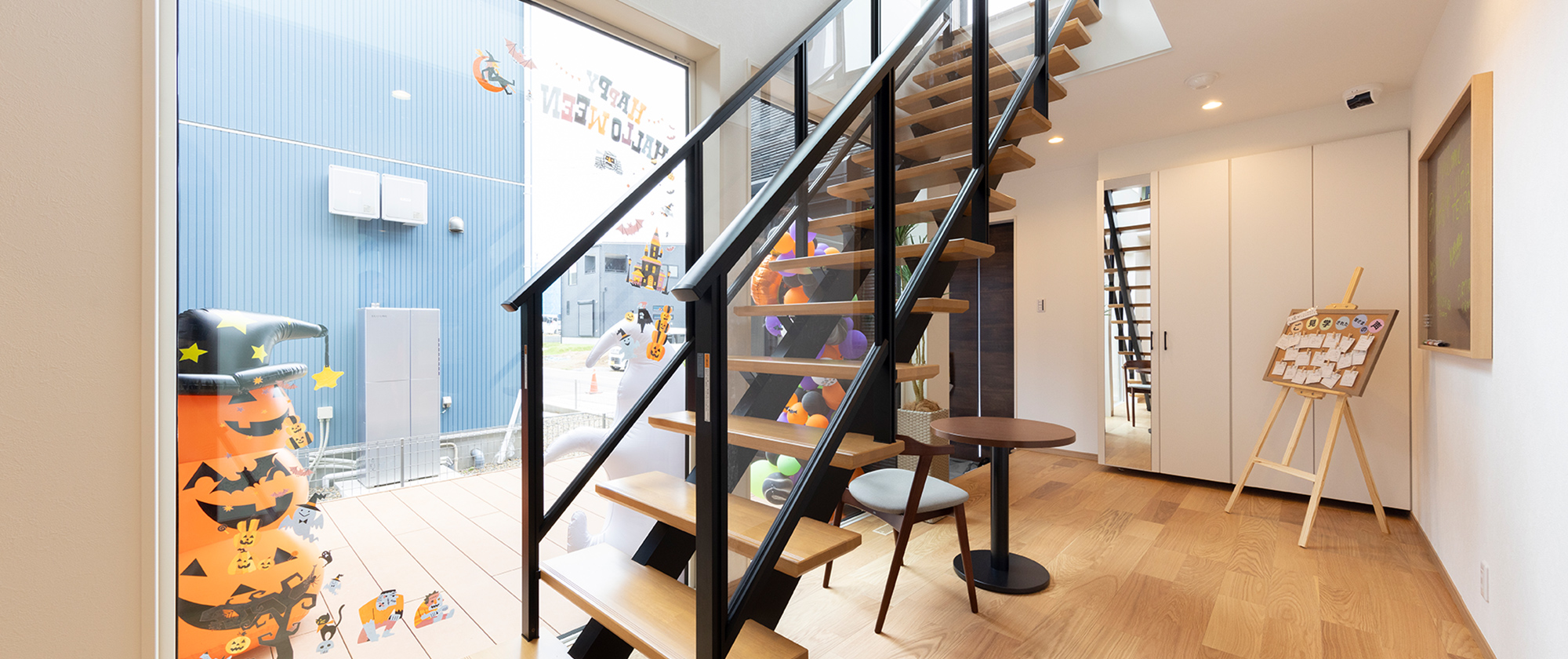 たくさんの住民の方が利用できるようにゆとりある設計になっているコミュニティハウスなので、エントランスも広々としています。ハロウィーンやクリスマスの飾り付けなどを施せば、コミュニティハウス全体が楽しいイベント空間に様変わりします。