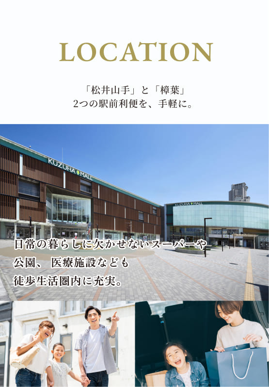 「松井山手」と「樟葉」、2つの駅前利便が105家族の暮らしを彩る。