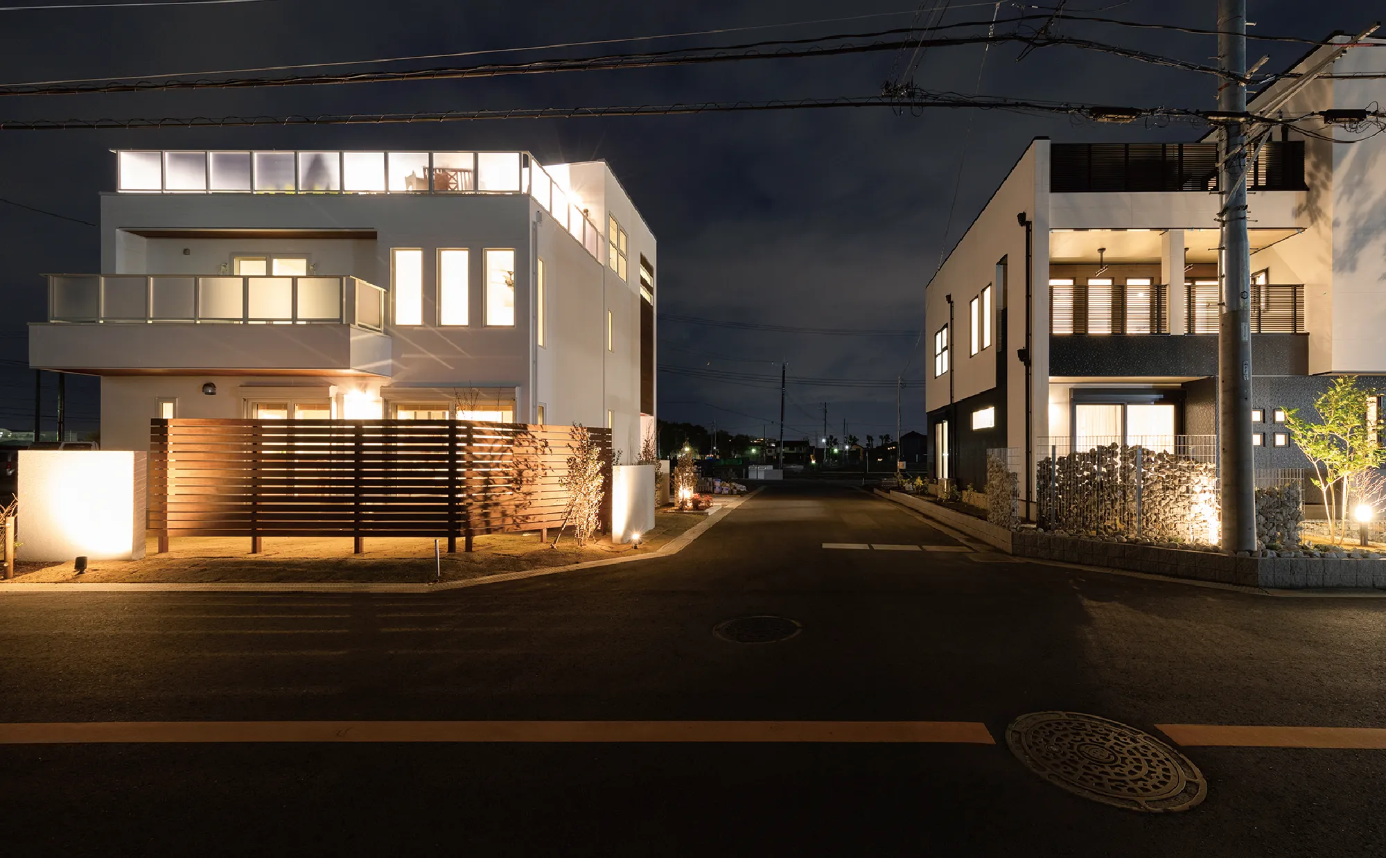 または6m(西側は歩道3mをプラス)の道路 - 外周ウォールのLEDライトやアプローチに