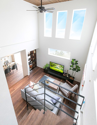 縦に広がる、立体的な大空間リビング。
