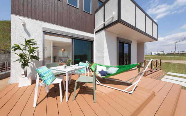 広い庭×ウッドデッキで