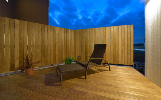 目隠しフェンスとの合わせ技で人目を気にしないプライベートウッドデッキスペースに!