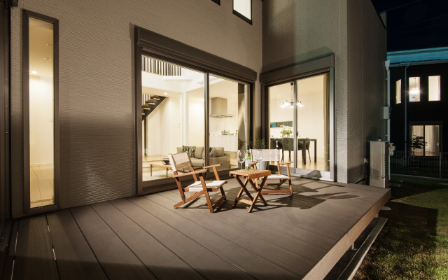夜のウッドデッキも雰囲気があり幻想的な空間に。