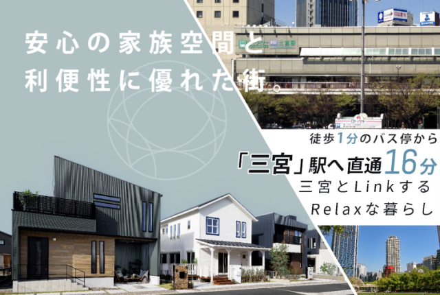 最寄りバス停まで徒歩1~2分「三宮」駅までバスで直通16分
