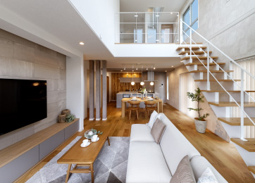 室温を実現する吹抜けが魅力の住まい。
