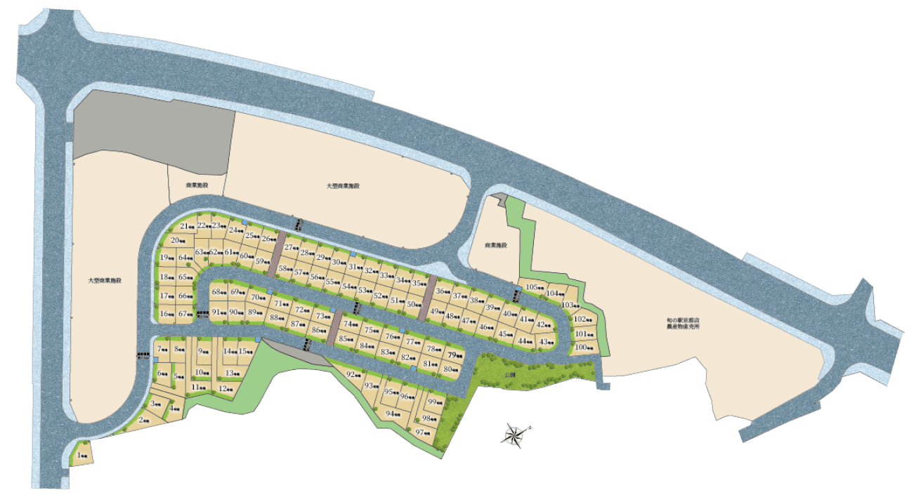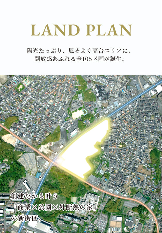 暮らしが広がると、毎日はもっと自由に、楽しくなる。開放感あふれる全105区画のビッグタウンを舞台に、さあ、新しい家族の日々をはじめよう。
